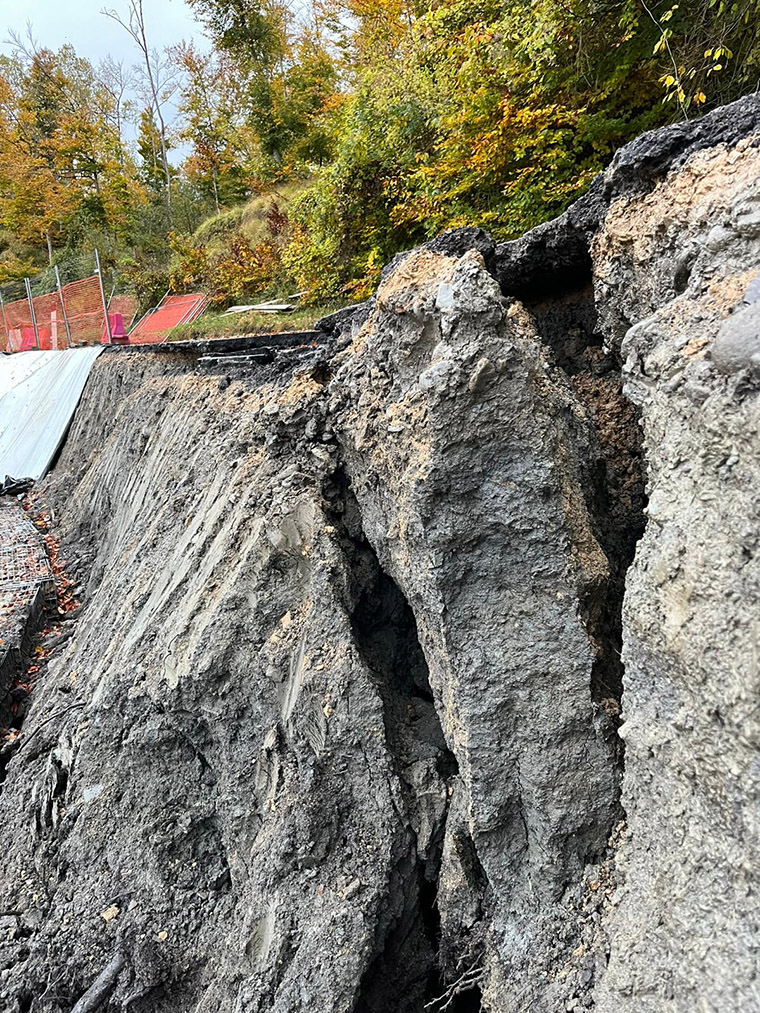 Durante le operazioni di scavo per la realizzazione dell’opera di sostegno, le piogge dei giorni scorsi hanno provocato il cedimento di una porzione della scarpata e la formazione di crepe lungo il ciglio di monte. Di fronte a questa situazione, per tutelare la sicurezza degli utenti e garantire la corretta esecuzione dei lavori, si è deciso di chiudere completamente la strada, revocando le precedenti ordinanze che avevano istituito il senso unico alternato e il divieto di transito per i mezzi di larghezza superiore ai 2,30 metri.