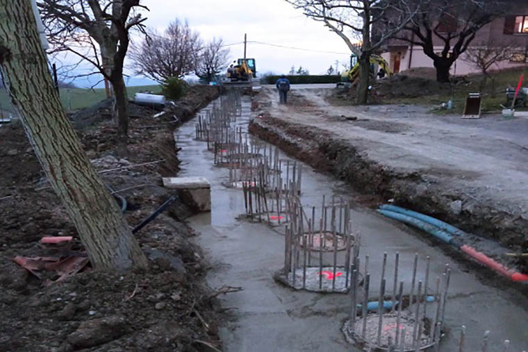 L’opera, già in fase avanzata, è collocata nei pressi degli edifici lesionati dalla frana che interessa l’abitato di Predolo. L’obiettivo è mitigare le conseguenze del dissesto, mettendo in sicurezza la zona attualmente colpita. In concreto, si sta realizzando di una paratia di pali trivellati e gettati in cemento armato, collegati da un cordolo a cui potranno essere agganciati dei tiranti d’ancoraggio. A ciò si uniscono opere di drenaggio tradizionale e profondo, con il rafforzamento e l’ampliamento del sistema già presente di pozzi ispezionabili, collegati sul fondo da condotta di scarico. Il nuovo sistema drenerà le acque più superficiali responsabili dello stato di saturazione del terreno, garantendo buoni risultati anche a profondità superiori. Queste opere non richiedono manutenzione e il loro effetto nel tempo sarà monitorabile con letture inclinometriche.
