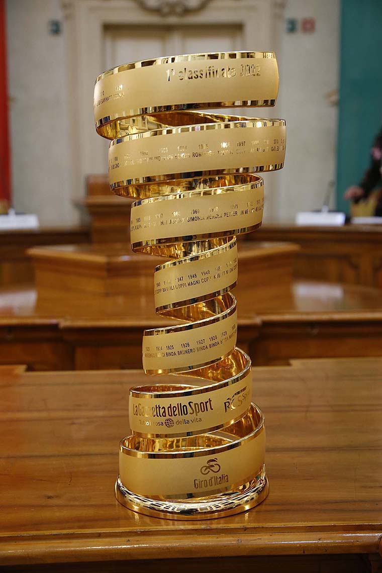 Quale segno del legame della città emiliana con la Corsa Rosa, Rcs Sport – Gazzetta dello Sport, promotore e organizzatore del Giro d’Italia, ha reso possibile l’esposizione – oggi nella Sala del Tricolore in occasione della presentazione del programma di iniziative di avvicinamento alla 11^ tappa “Arriva il Giro!” – del Trofeo Senza Fine che sarà assegnato al vincitore del Giro d’Italia 2022.