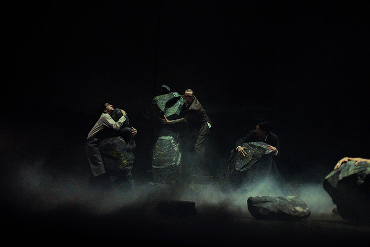 Cinque straordinari performer si muovono in un paesaggio onirico e sulfureo, corpi umani e non umani attraversano fenomeni fisici, astronomici e biologici, generando metamorfosi poetiche e vertiginose.