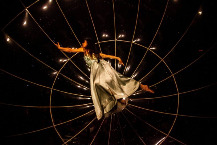 Sarà un inanellarsi di sequenze che vedono protagonista il prode Astolfo e le sue gesta, le azioni si svolgono soprattutto in volo, accompagnate da immagini che trascolorano sulla facciata del Duomo, a creare il mondo visto dagli eroi. Nella piazza si alternano piani diversi nei quali si conduce l’azione scenica: dal volo nell’aria, ad azioni di danza e performance sui palchi che animano lo spazio, fino al passaggio sospeso dell’Angelo, che chiude la rappresentazione, in un tripudio di fiori che celebrano il senno ritrovato da Orlando. Infine non c’è un grande palco sul quale tutto si svolge: il pubblico è tutto in prima fila, perché lo spettacolo si svolge ovunque, attorno e sopra il pubblico circondato e quindi immerso nello spettacolo.
