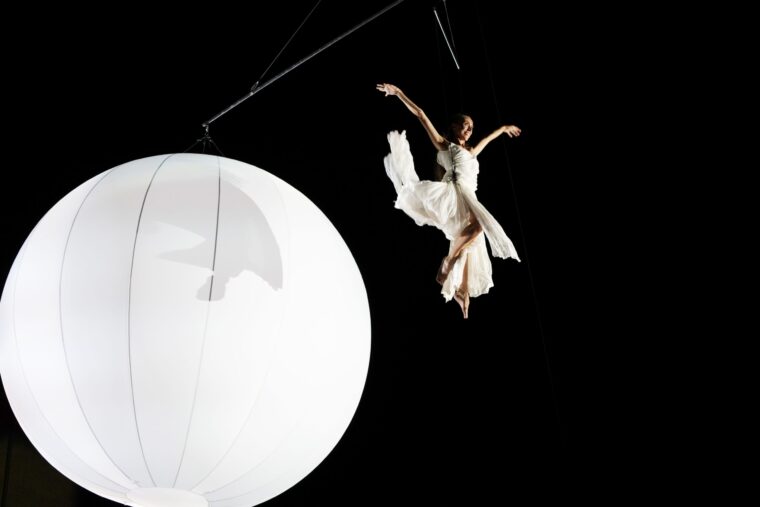 Sarà un inanellarsi di sequenze che vedono protagonista il prode Astolfo e le sue gesta, le azioni si svolgono soprattutto in volo, accompagnate da immagini che trascolorano sulla facciata del Duomo, a creare il mondo visto dagli eroi. Nella piazza si alternano piani diversi nei quali si conduce l’azione scenica: dal volo nell’aria, ad azioni di danza e performance sui palchi che animano lo spazio, fino al passaggio sospeso dell’Angelo, che chiude la rappresentazione, in un tripudio di fiori che celebrano il senno ritrovato da Orlando. Infine non c’è un grande palco sul quale tutto si svolge: il pubblico è tutto in prima fila, perché lo spettacolo si svolge ovunque, attorno e sopra il pubblico circondato e quindi immerso nello spettacolo.