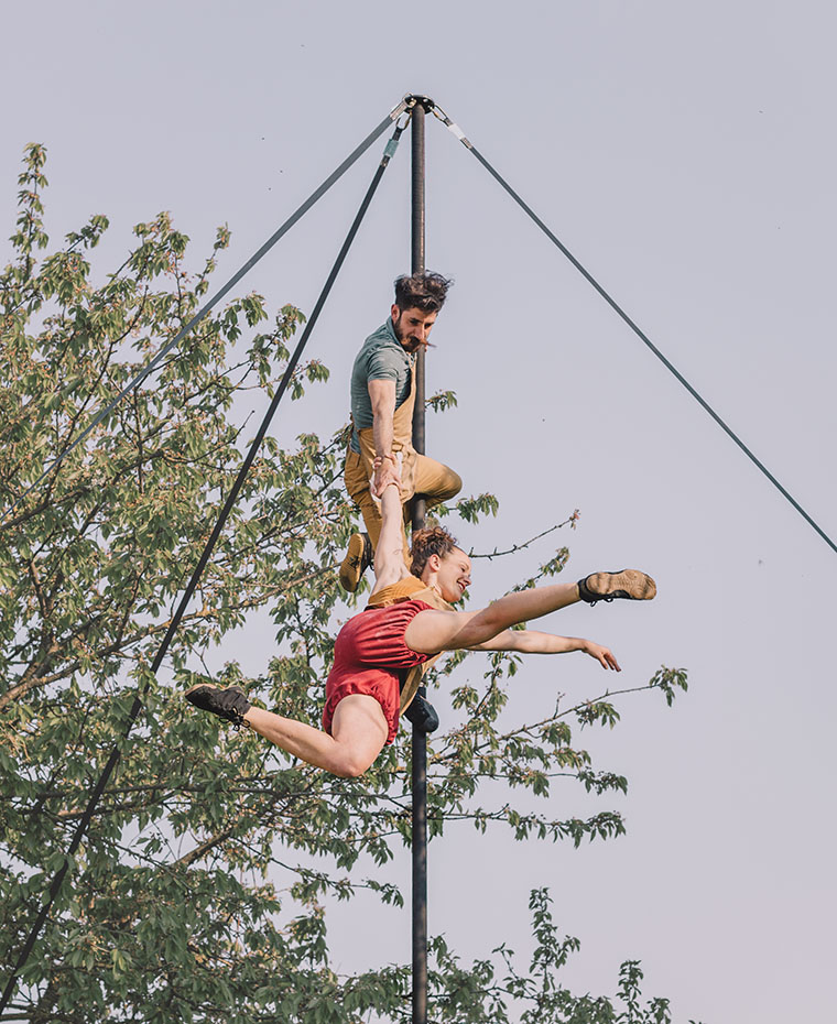 Uno spettacolo che racconta di una coppia di panettieri, un libro di ricette e qualche divergenza in cucina. Il ritmo incalzante condurrà gli spettatori in un processo di panificazione un po’ inconsueto. Gli ingredienti, scelti con cura e impastati in maniera eccentrica, saranno il pretesto per giochi e acrobazie e Katharina e Luca, mentre attendono che il pane sia cotto in forno travolgeranno gli spettatori con la loro energia e dolcezza. Una formula fatta di farina, acqua, acrobazie a terra e in volo sul palo cinese, equilibri sul monociclo e improbabili giocolerie. Un piatto alla portata di tutti.