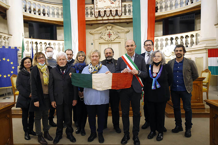Questa mattina, nella Sala del Tricolore del Comune di Reggio Emilia, il sindaco Luca Vecchi ha ricevuto in dono da Chiara Morelli, nipote del partigiano Giorgio Morelli, nome di battaglia Il Solitario, la bandiera tricolore sventolata dal balcone del municipio nel pomeriggio del 24 aprile 1945, giorno della Liberazione di Reggio Emilia.