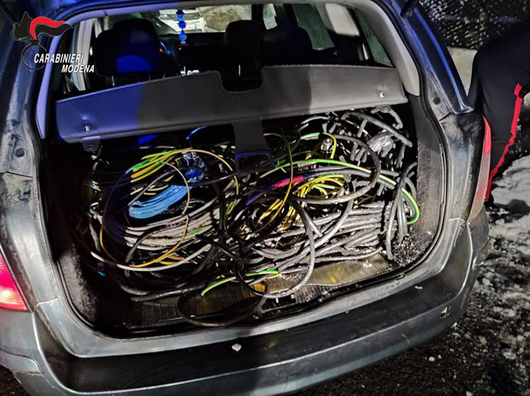 Nel corso della notte del 28 febbraio, in Lama Mocogno (MO), i Carabinieri della locale Stazione e della Compagnia di Pavullo nel Frignano hanno tratto in arresto 3 persone, responsabili di furto aggravato in concorso. Nel corso di un controllo alla circolazione stradale, i militari hanno sottoposto a controllo l’autovettura su cui viaggiavano i 3 indagati; nel bagagliaio sono stati rinvenuti oltre 200 Kg. di cavi in rame, provento del furto commesso immediatamente prima in un capannone di un’azienda del luogo.