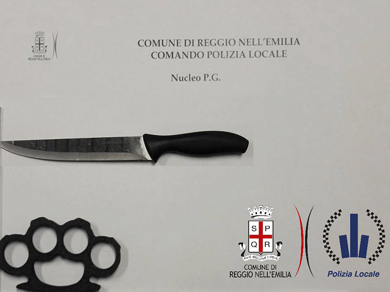 Nel corso dei controlli coordinati dalla Questura per contrastare il disagio giovanile, gli agenti della Polizia locale di Reggio Emilia, nella serata di mercoledì 6 ottobre, hanno fermato e denunciato un giovane trovato in viale Monte San Michele con una busta contenete due coltelli da cucina e un tirapugni.