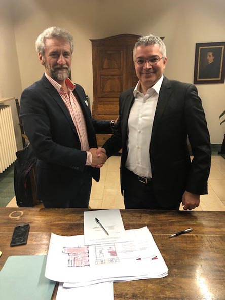Alle Reggiane Parco Innovazione è stato firmato da Stu Reggiane e dalla Fondazione dei Dottori Commercialisti ed Esperti Contabili di Reggio Emilia il contratto preliminare di compravendita degli spazi che all’interno del Capannone 17 diverranno la nuova sede dell’Ordine dei Dottori Commercialisti ed Esperti Contabili di Reggio Emilia. Firmatari Luca Torri, Amministratore delegato di Stu Reggiane – società partecipata dal Comune di Reggio Emilia e Iren Rinnovabili che gestisce lo sviluppo delle infrastrutture del Parco Innovazione – e Corrado Baldini, Presidente della Fondazione e dell’Ordine.