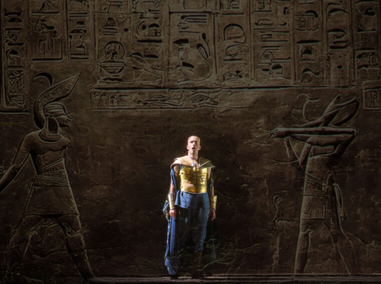 “Non aveva senso per me ripercorrere la strada, già pesantemente battuta, dell’attualizzazione. Piuttosto (…) abbiamo pensato, (…) – scrive nelle note di regia Pier Francesco Maestrini – di attingere più dal fantastico che dallo storico e ricercare una evocativa chiave visuale della vicenda per quella che è, cercando di evidenziare la spettacolarità degli eventi prodigiosi e gli effetti dei poteri soprannaturali che sono anche i momenti cruciali dell’opera. Si è anche cercato, soprattutto nei costumi, di identificare le opposte fazioni come due facce della stessa medaglia. Anche perché, se il racconto narra di Mosé e del Faraone cresciuti fianco a fianco come fratelli, lo stesso Rossini mette in conflitto due bassi, un confronto epico insito della natura umana, presente in ogni cultura e religione, come se lo Yin non potesse sussistere senza Yang. E purtroppo, sono sempre gli estremismi e i preconcetti a mettere in contrasto mortale fazioni che fanno capo allo stesso ceppo etnico, allora come oggi”.